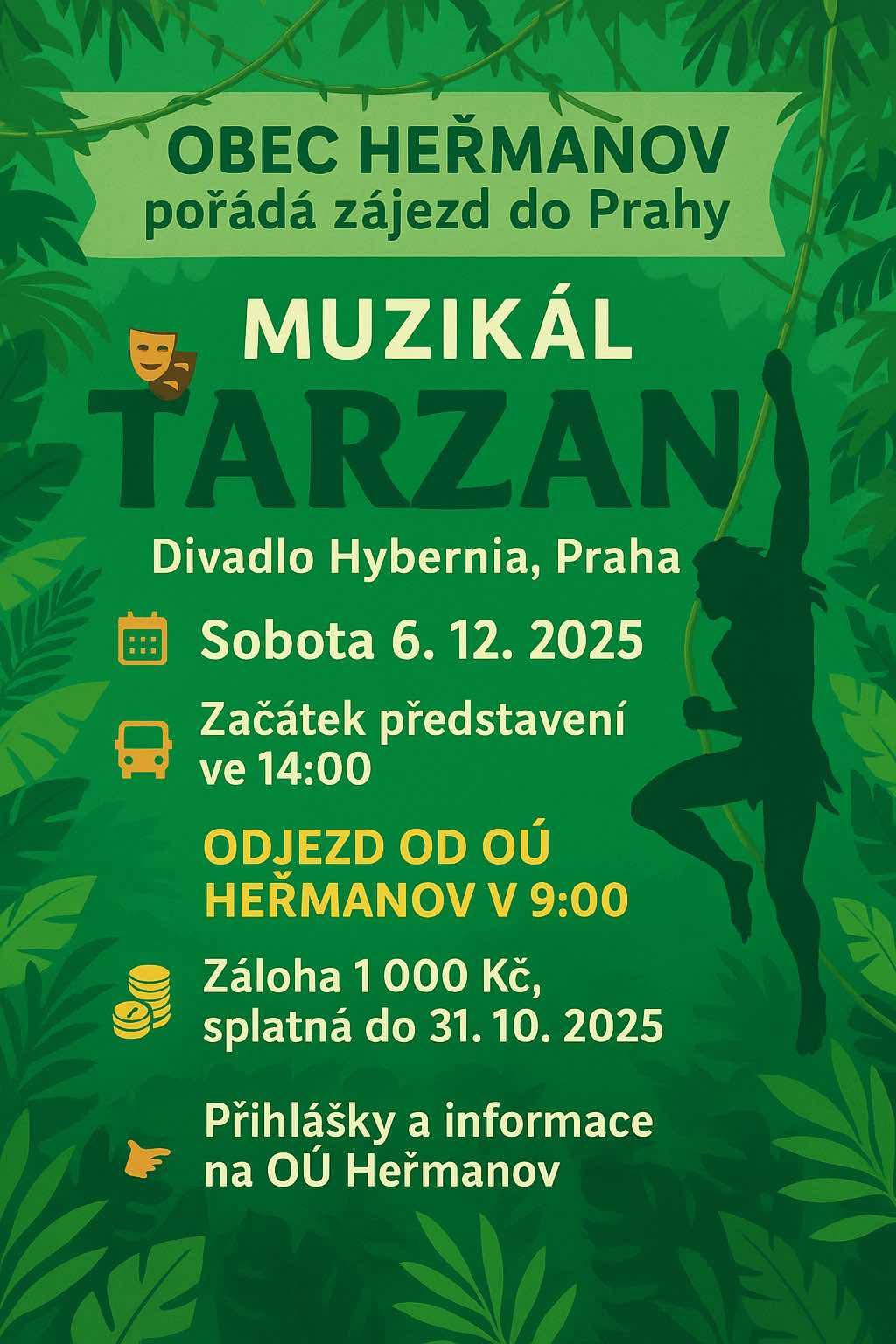 Obec Heřmanov pořádá zájezd do Prahy na muzikál „Tarzan„.